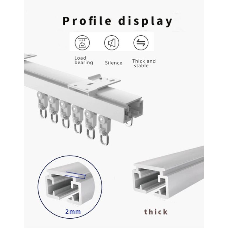 Ray rèm tự động Full phụ kiện cho động cơ rèm Dooya - Xiaomi - Tuya - Ewelink... bát bắt trần ( Ray dày 2mm )