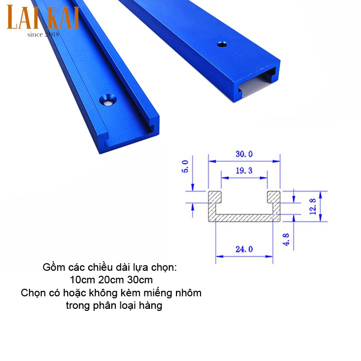 Kích thước ray lựa chọn: 10cm; 20cm; 30cm, chi tiết xem hình. Có thể chọn có hoặc không kèm miếng nhôm trượt.