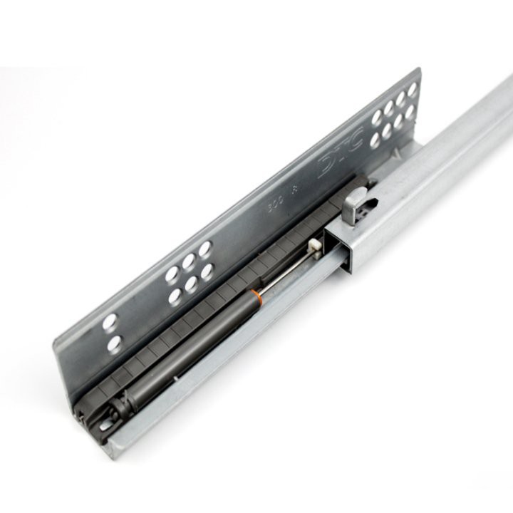RAY TRƯỢT GIẢM CHẤN DTC- Dòng sản phẩm ray trượt âm giảm chấn loại mở rộng 3/4 ngăn kéo (loại ray trượt âm giảm chấn hai (02) tầng) kết cấu gồm có bộ cơ cấu piston dầu giảm chấn. Khi ngăn kéo được đẩy tới vị trí khớp của lò xo rút, thì sẽ có xu hướng bị kéo về bên trong và dưới lực cản chậm của piston dầu sẽ làm ngăn kéo đóng từ từ, không gây tiếng ồn.