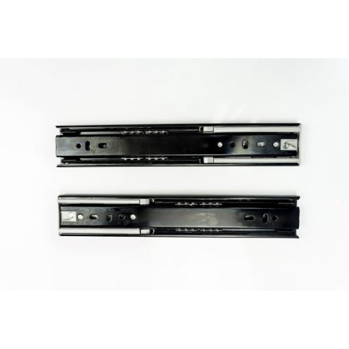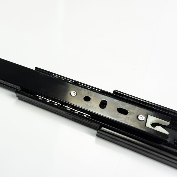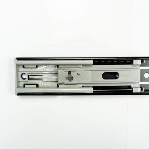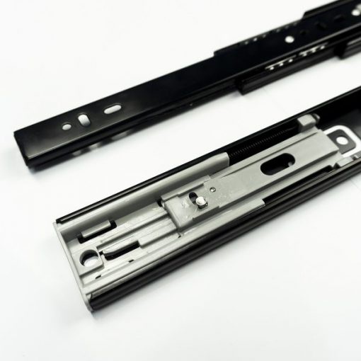 Ray trượt bi 2 tầng: Thường được áp dụng đối với loại ngăn kéo lắp theo kiểu 1/4 ngăn tủ ở bên trong và 3/4 ngăn ở bên ngoài. Tùy thuộc vào bản rộng và độ dày và của tủ mà có thể chịu tải trọng từ 20 cho tới 45 kg