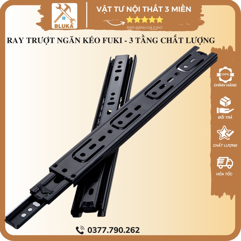 Ray Trượt Ngăn Kéo Thanh Ray Bi Trượt 3 Tầng Cho Hộc Tủ Bếp Tủ Quần Áo Bàn Giường 25, 30, 35, 40, 45, 50 cm - 1 Bộ Fuki Bluka
