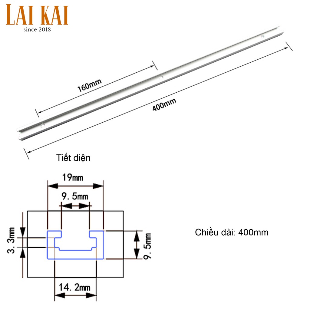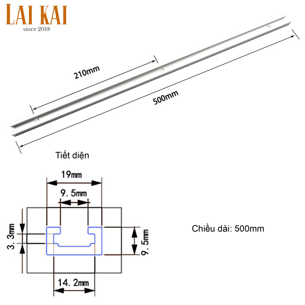Sản phẩm gồm 1 ray trượt theo kích thước lựa chọn và có hoặc không kèm thanh T, tặng vài con vít inox bắt ray vào bàn.