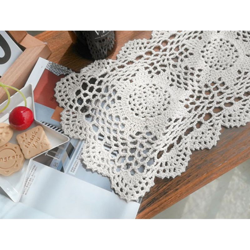 Giới thiệu RB/Tấm lót ly cốc bình hoa hình chữ nhật ren móc phòng cách vintage trang trí decor phòng bếp phòng khách bàn trà Âu