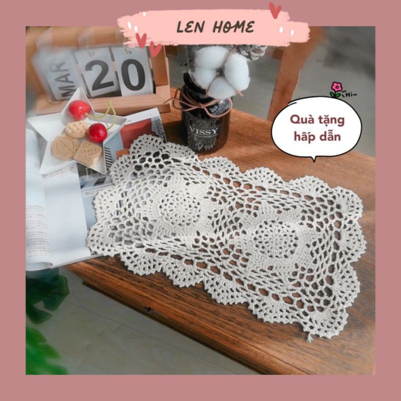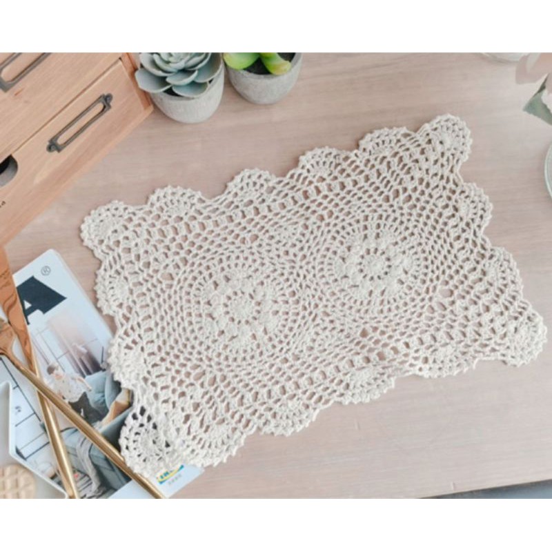 RB/Tấm lót ly cốc bình hoa hình chữ nhật ren móc phòng cách vintage trang trí decor phòng bếp phòng khách bàn trà Âu
