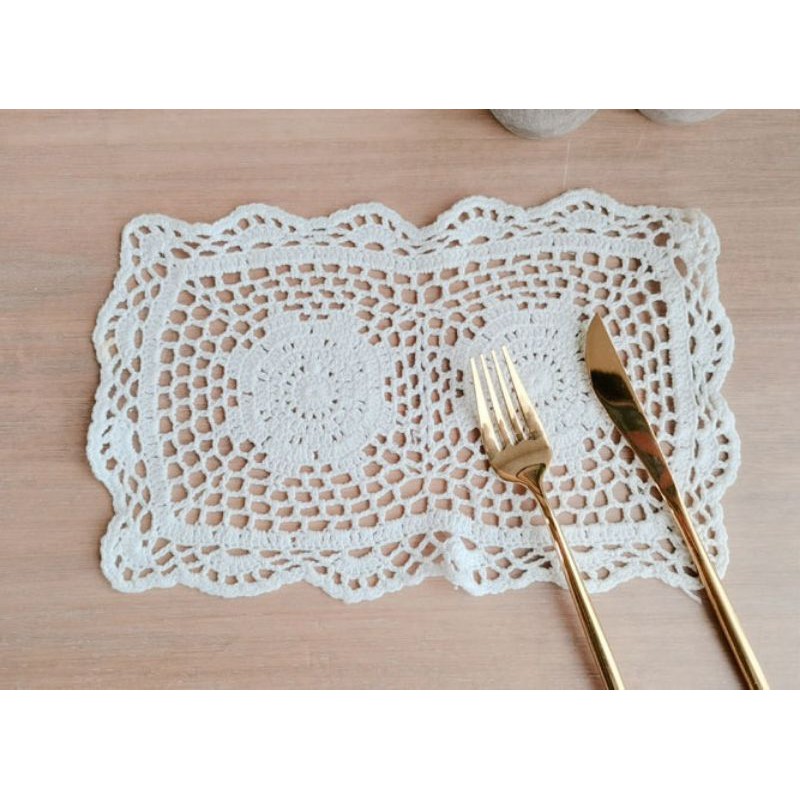 Nhà cửa & Đời sống > Bộ đồ bàn ăn > Khay, tấm lót bàn ăn || RB/Tấm lót ly cốc bình hoa hình chữ nhật ren móc phòng cách vintage trang trí decor phòng bếp phòng khách bàn trà ÂuCòn hàng