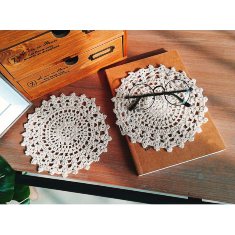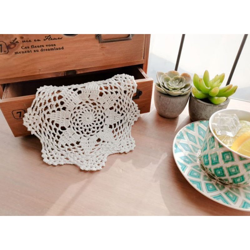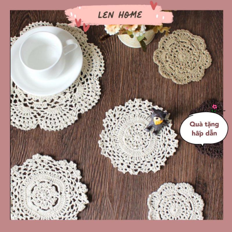 RC/Tấm lót ly tách bình hoa ren móc thủ công vintage phòng cách châu âu 100% cotton trang trí decor phòng bếp retro Âu