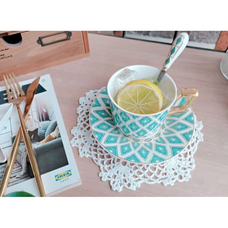 🌿Lót ly tách xinh xắn được móc tỉ mỉ và tinh tế bằng sợi len cotton 100% ạ :)Chỉ với một tấm lót ren cũng đủ khiến phòng khách, phòng ăn, tách trà đĩa bánh trở nên đẹp mắt, sang trọng và thanh nhã gấp bội phần đấy ạ :)
