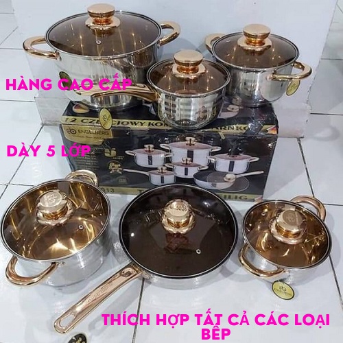 [RẺ] Bộ Nồi Đức Hoàng Gia ENGELBERG Chính Hãng 6 Món 12 Chi Tiết Nâng Tầm Gian Bếp ( loại xin đáy 5 lớp )