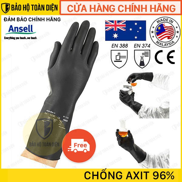 Giới thiệu (RẺ, CHÍNH HÃNG!!) Găng chống axit H2SO4 96% | Nhập khẩu thương hiệu Úc | Găng chống hóa chất Ansell 87-118