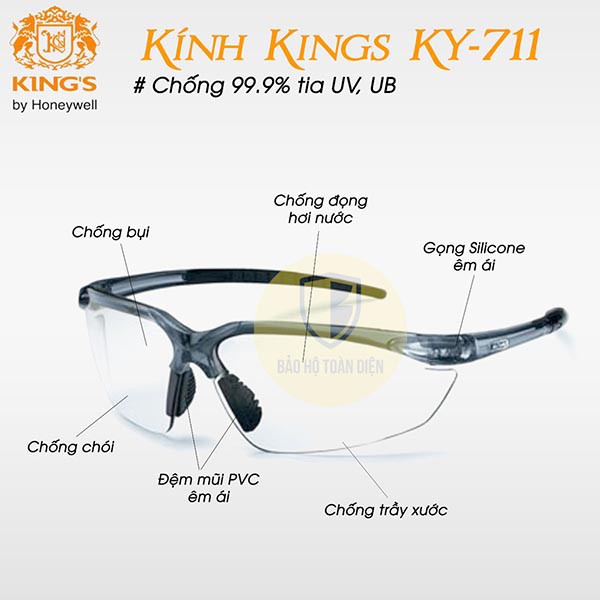 Giới thiệu (RẺ, CHÍNH HÃNG) Kính bảo hộ Kings KY 711 [TẶNG KHĂN LAU KÍNH] Kính chống bụi, chống gió, kính chống tia UV dùng chạy xe