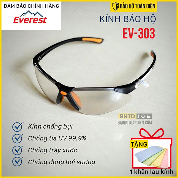 (RẺ, CHÍNH HÃNG!!) Kính bảo hộ Everest EV303 [TẶNG KHĂN LAU KÍNH]| Kính chống bụi, chống gió, kính chống tia UV