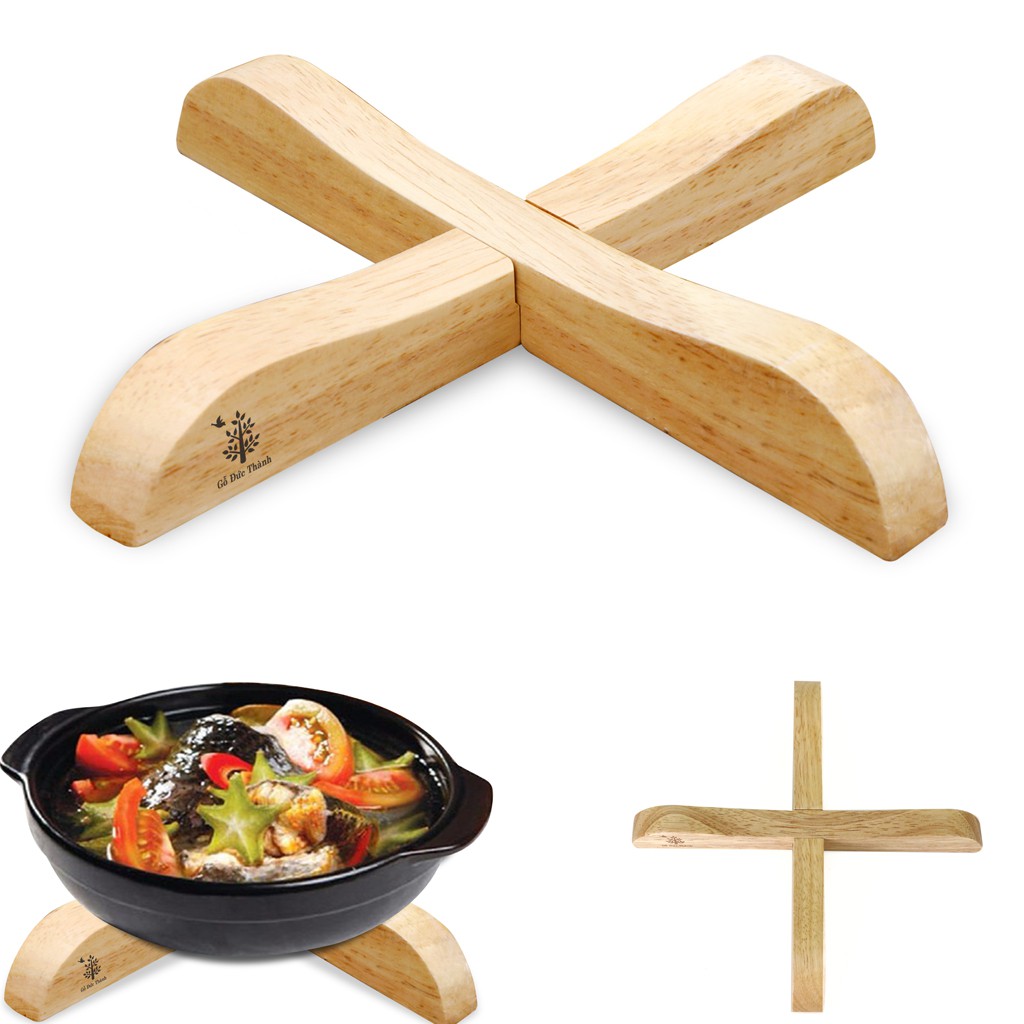 Rế gỗ chong chóng Đức Thành làm từ gỗ nên khả năng chịu nhiệt, chịu lực rất tốt.- Công dụng: Dùng để lót nồi, xoong, chảo