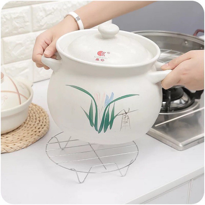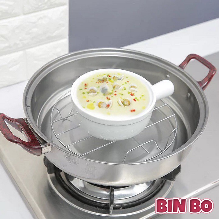 Nhà cửa & Đời sống > Bộ đồ bàn ăn > Khay, tấm lót bàn ăn || Rế hấp 4 chân inox Vạn Lợi Dragon hàng Việt Nam kiêm rế lót nồi rẻ hấp 2 trong 1Còn hàng