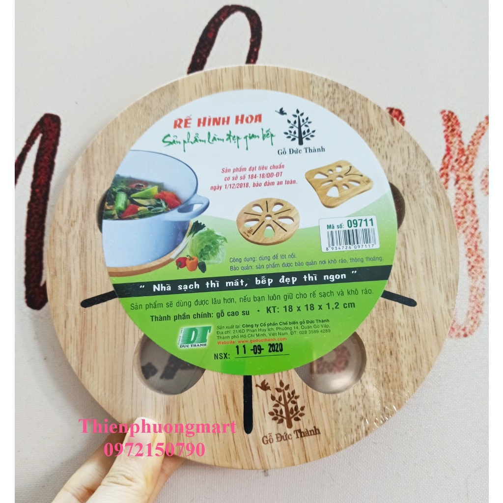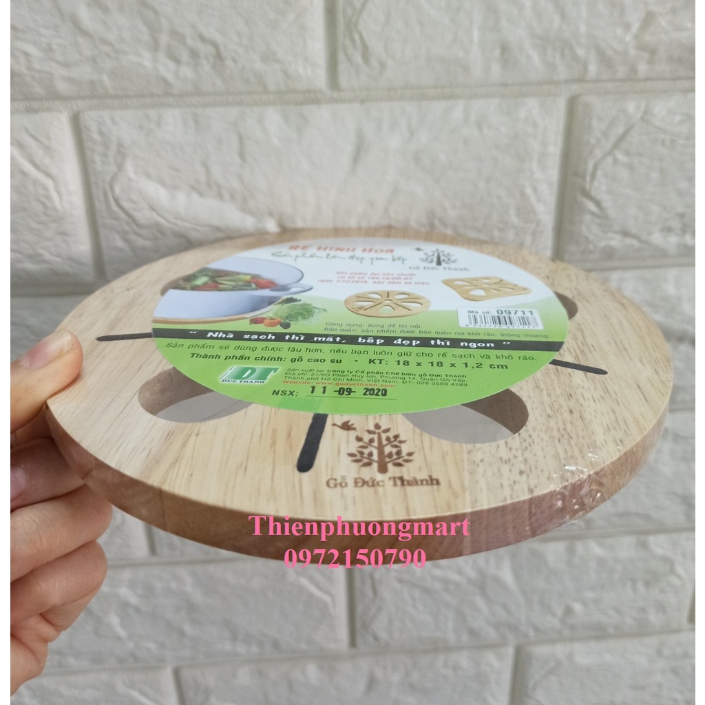 Rế Hình Hoa Gỗ Đức Thành 09711 Bền Đẹp Sang Trọng - Rế Lót Nồi Gỗ cao su 18,2 x 18,2 x 1,2 cm