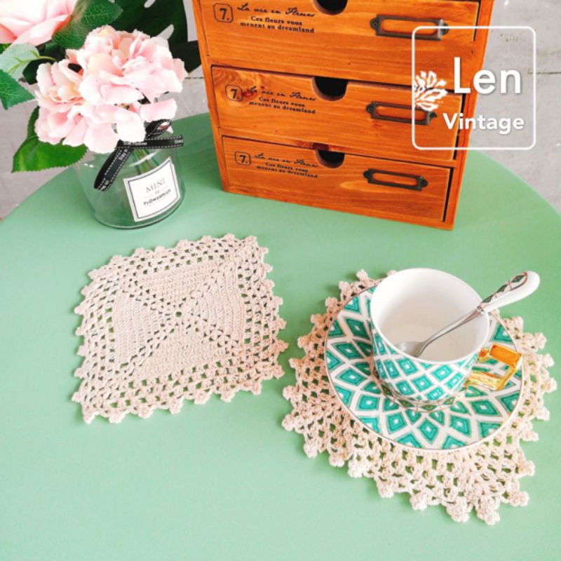Nhà cửa & Đời sống > Bộ đồ bàn ăn > Khay, tấm lót bàn ăn || RE/Lót ly tách móc ren vintage decor phòng bếp trang trí bàn ăn đẹp mắtCòn hàng