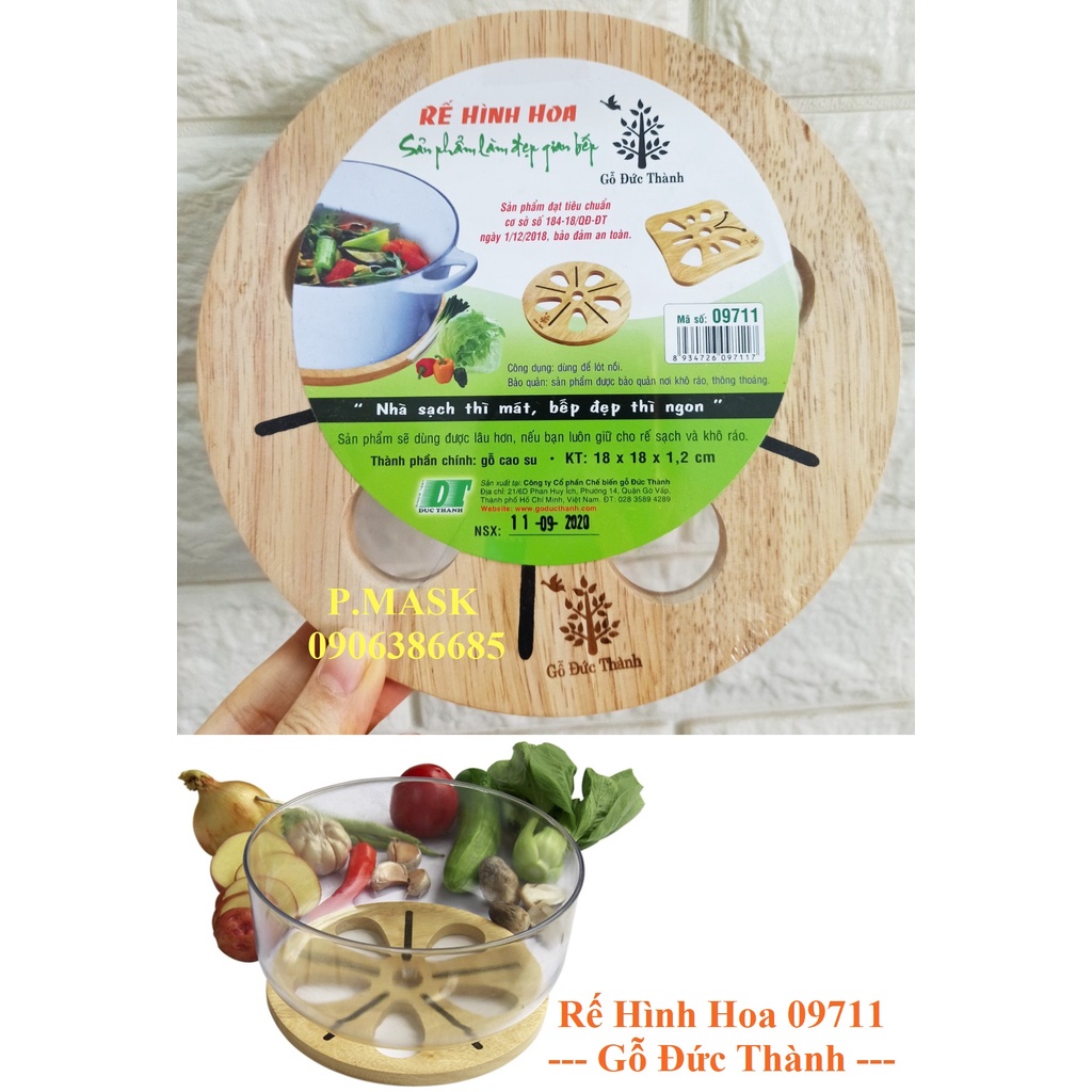 👍👍👍 Rế hình hoa 09711 được làm từ gỗ cao su, có bề mặt nhẵn mịn, khả năng chịu nhiệt và chịu lực tốt và có độ bền cao. Sản phẩm được thiết kế có các rãnh để tạo sự ma sát giúp các đồ dùng không bị trơn tuột nhằm đảm bảo tối đa sự an toàn cho người sử dụng. Ngoài ra, các rãnh này còn giúp làm thông thoáng nhiệt, khi chúng ta đặt nồi nóng lên trên.