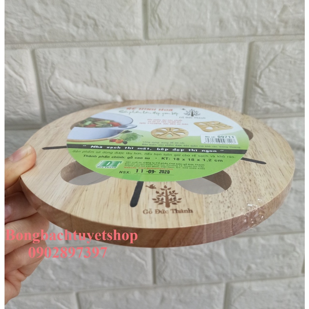 Rế hình hoa 09711 Gỗ Đức Thành - Rế Lót Nồi Hình Hoa Gỗ Cao Su Bền Đẹp Sang Trọng- Kích thước: 18,2 x 18,2 x 1,2 cm