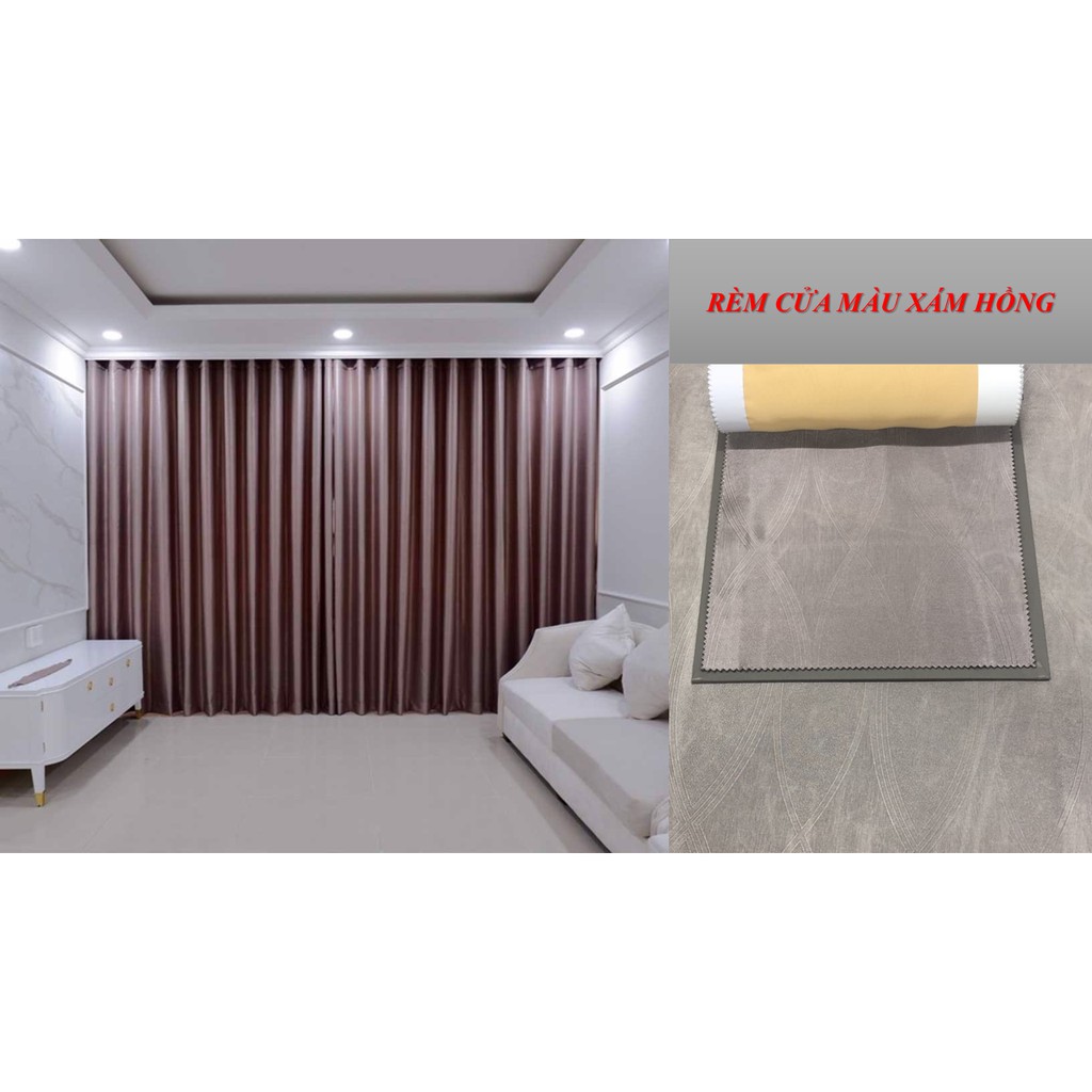 RÈM CỬA cao cấp chồng nắng 97%, vải gấm màu hồng xám , hoa văn hình gợn sóng , đa dạng nhiều kích thước