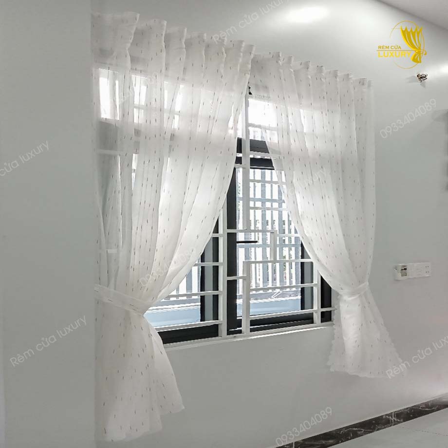 Rèm cửa dán tường 2 lớp voan trắng trang trí cửa sổ phòng khách dễ lắp đặtCAM KẾT