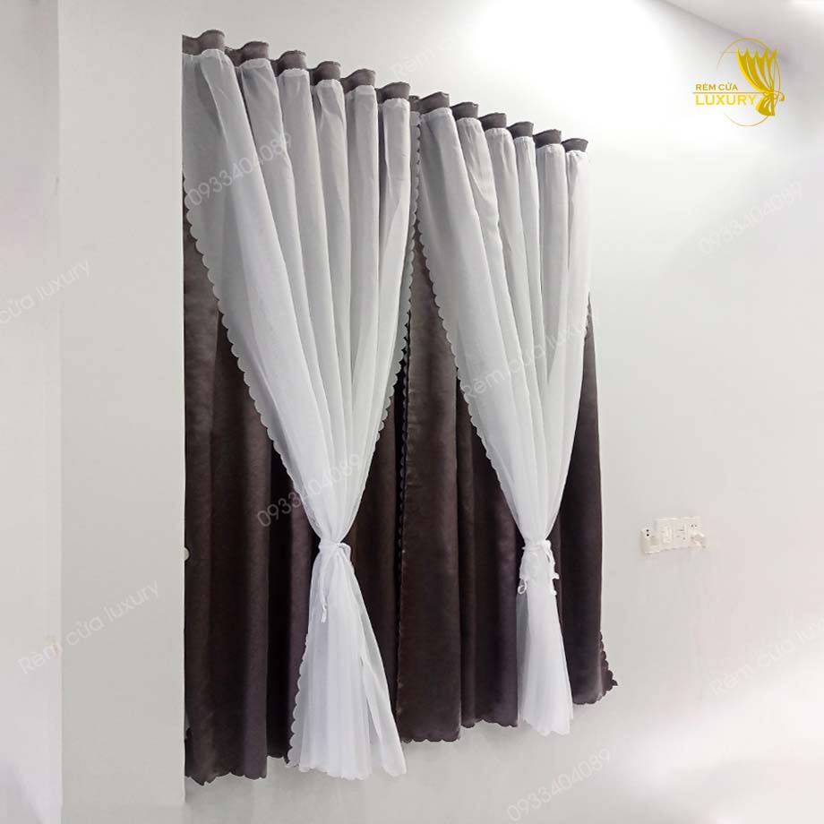 Lưu ý: Có thể dùng 2 rèm dán cho 1 cửa để tạo sóng và kéo sang 2 bên sẽ đẹp và sang trọng hơn, nên chọn chiều ngang rèm dài hơn cửa để rèm che hết cửa và tạo độ xếp ly.