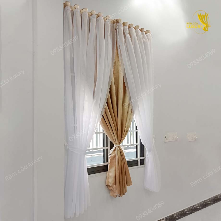Rèm cửa dán tường 2 lớp voan trắng trang trí cửa sổ phòng khách dễ lắp đặt
