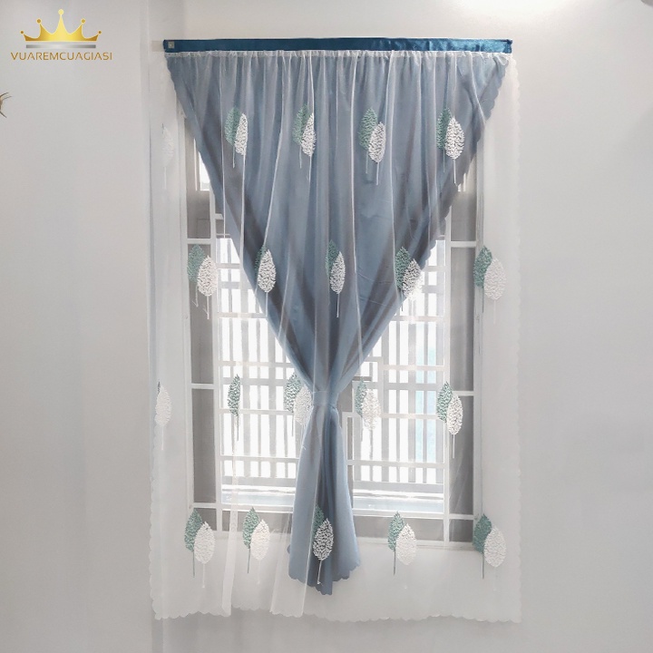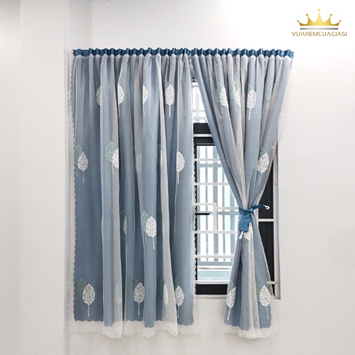 Nhà cửa & Đời sống > Trang trí nhà cửa > Rèm cửa, màn che || Rèm Cửa Dán Tường Màu Xanh Dương chống nắng 2 lớp họa tiết voan lá đôi xanh cao cấp VIP23 vuaremgiasiCòn hàng