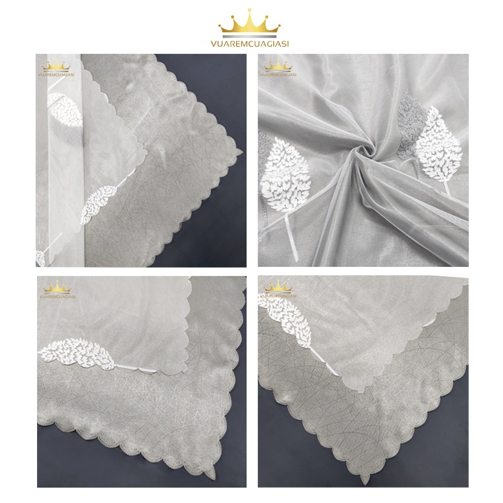 Giới thiệu Rèm Cửa Dán Tường Màu Xám Ghi chống nắng 2 lớp họa tiết voan lá đôi ghi VIP22 Vuaremgiasi