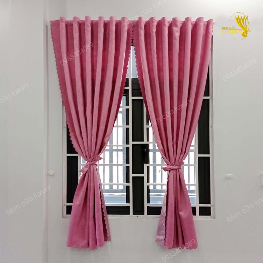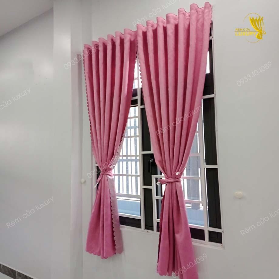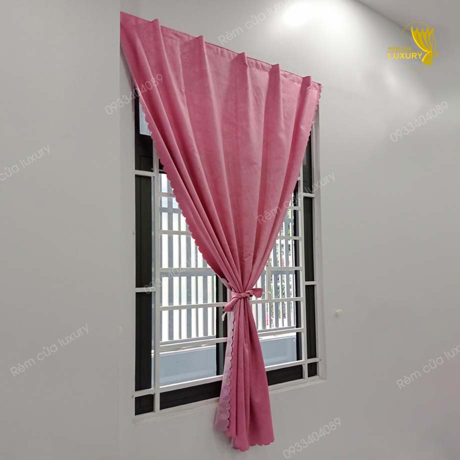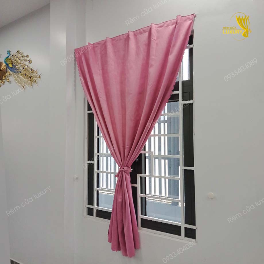 Rèm cửa dán tường, rèm cửa sổ màu hồng 1 lớp vải sang trọng xinh xắnCAM KẾT