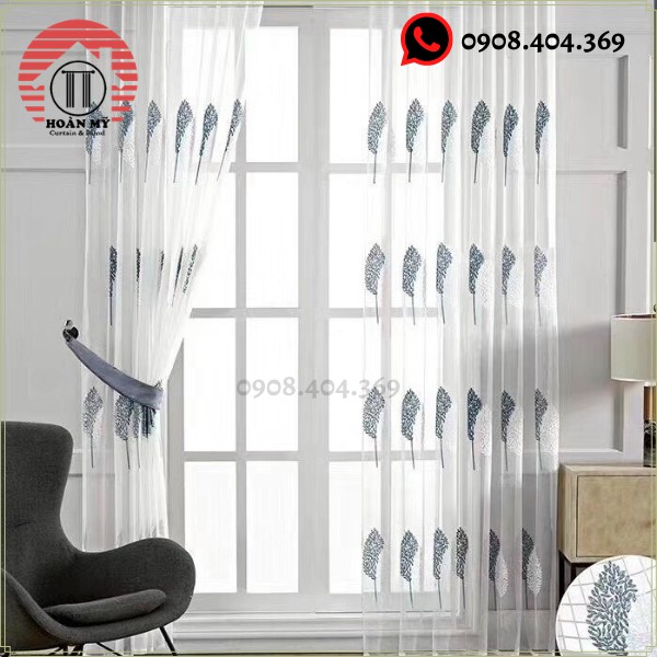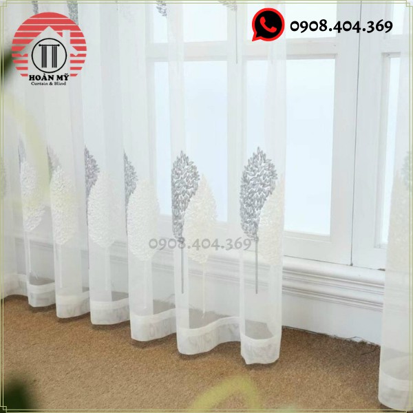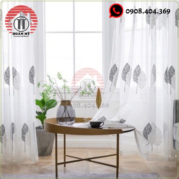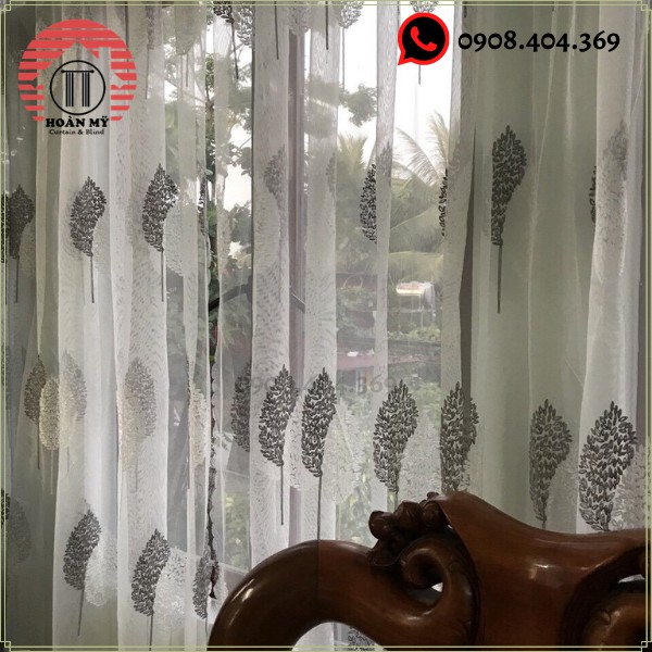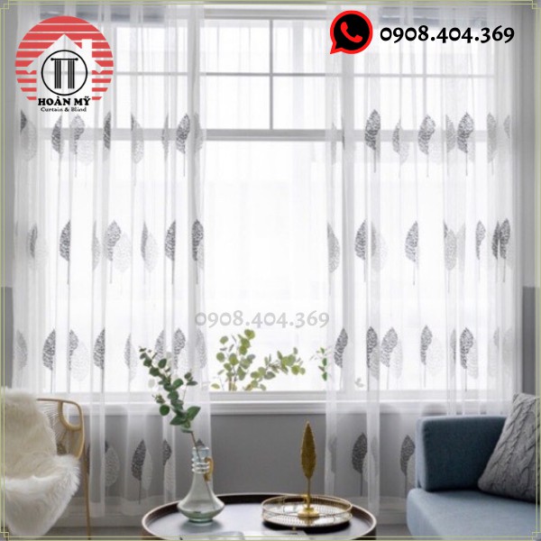 Chất liệu rèm: Vải voan có thêu lá màu ghi như ảnh ( nhìn xuyên mờ )
