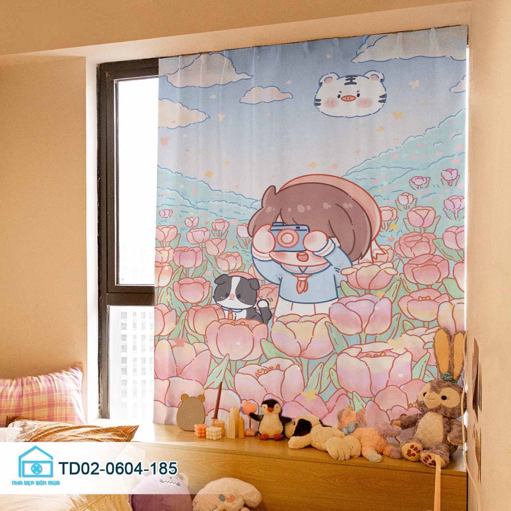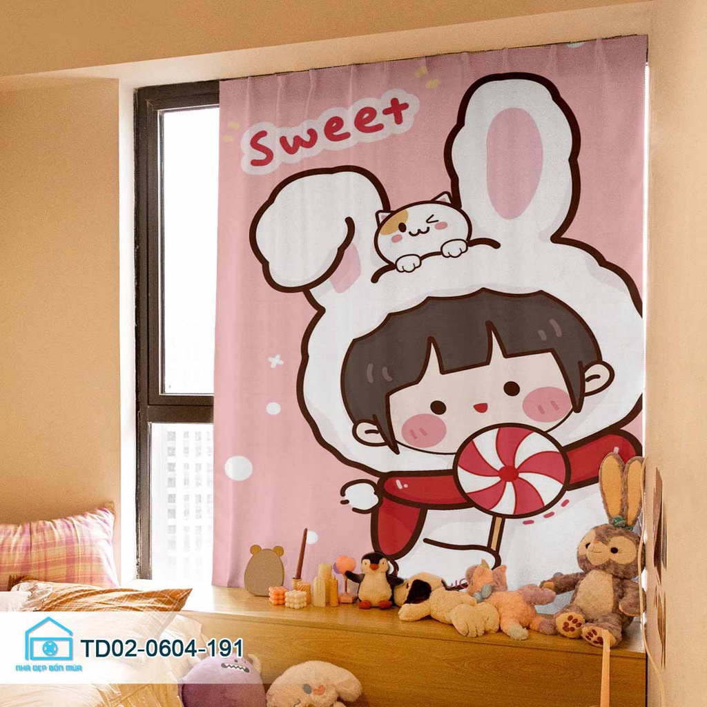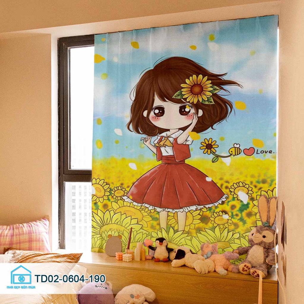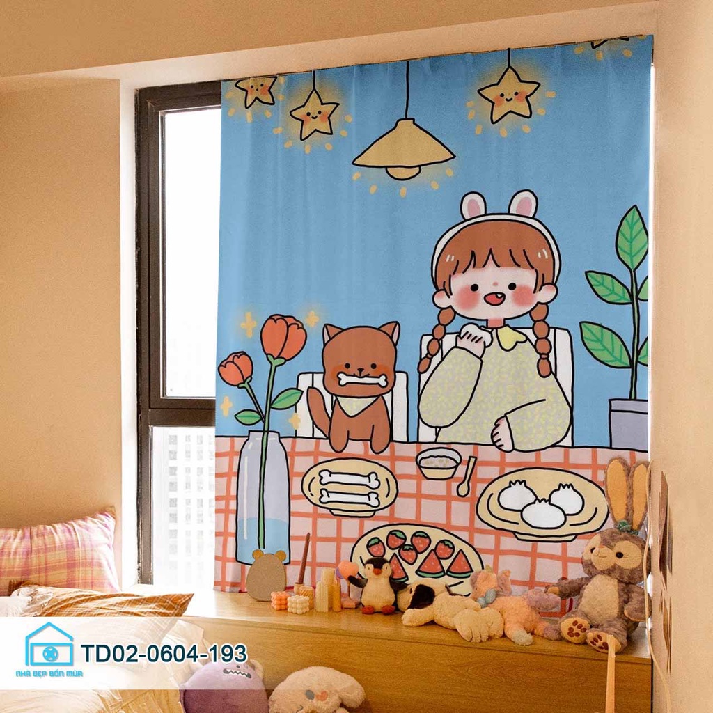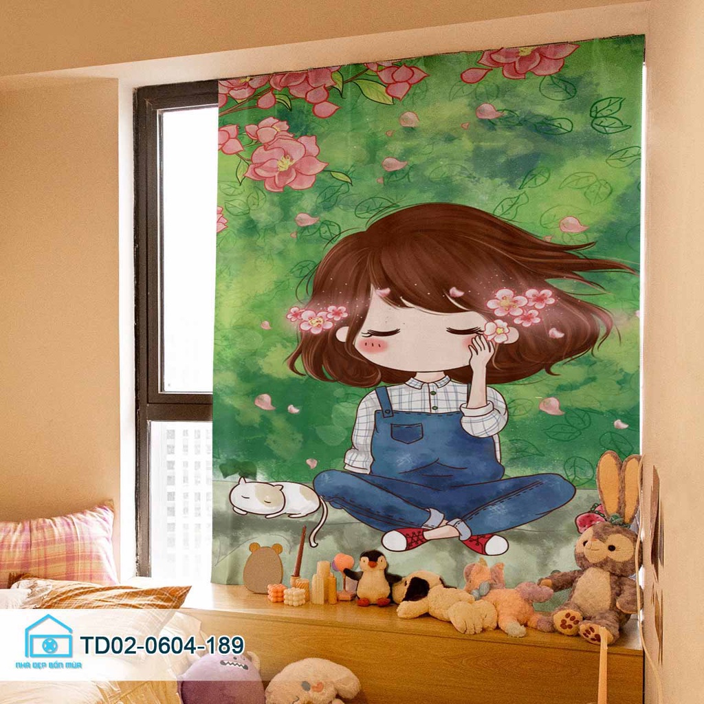 Rèm dán cửa sổ Tín Phát Decor, rèm cửa phòng khách cửa sổ, phòng ngủ Cô Bé dễ thương