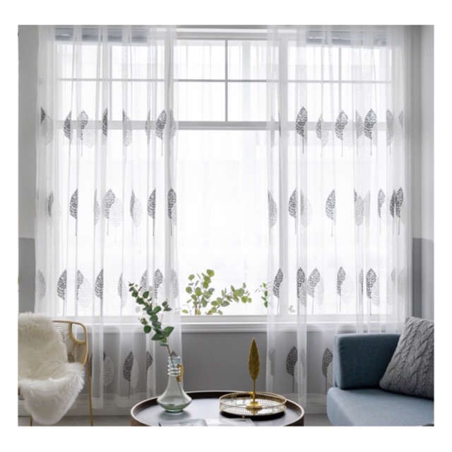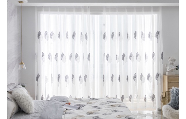 Nhà cửa & Đời sống > Trang trí nhà cửa > Rèm cửa, màn che || Rèm Voan Thêu Lá Màu Ghi S03, Rèm Voan Thêu Xinh Xắn, Rèm Voan Trang Trí, Rèm CửaCòn hàng