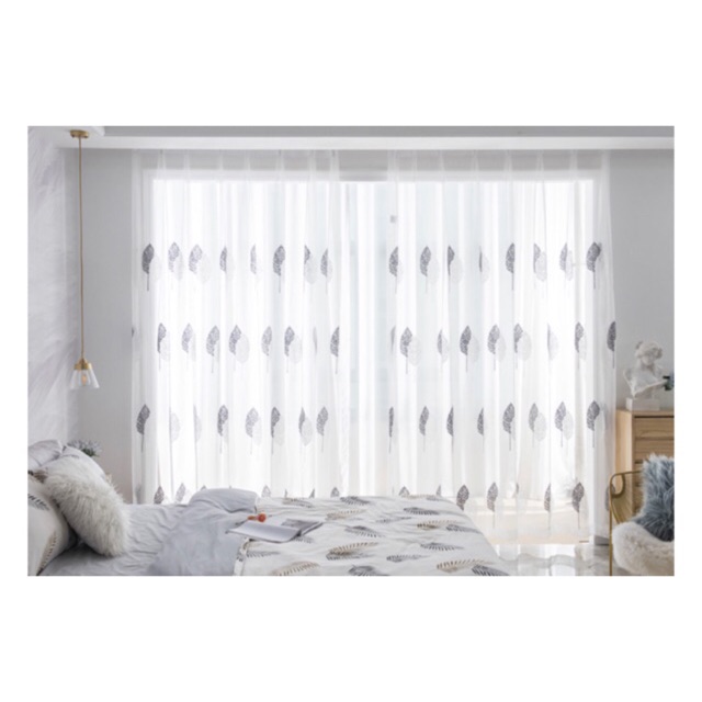 👉 Chất liệu rèm: Vải voan lưới có thêu từng cặp lá như ảnh