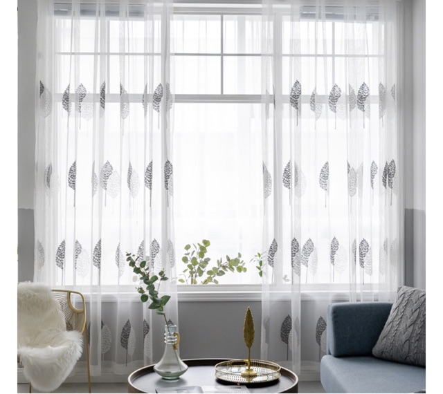 Nhà cửa & Đời sống > Trang trí nhà cửa > Rèm cửa, màn che || Rèm Voan Thêu Lá Màu Ghi TH03Còn hàng