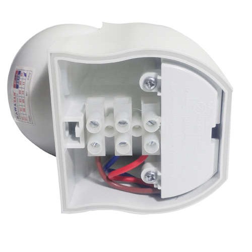 Khi trời tối nếu có người di chuyển trong khu vực quét cảm ứng, lập tức tiếp điểm bên trong sẽ đóng công tắc để mở đèn (có thể lắp còi báo động khi có người đột nhập còi báo sử dụng điện áp 220v).
