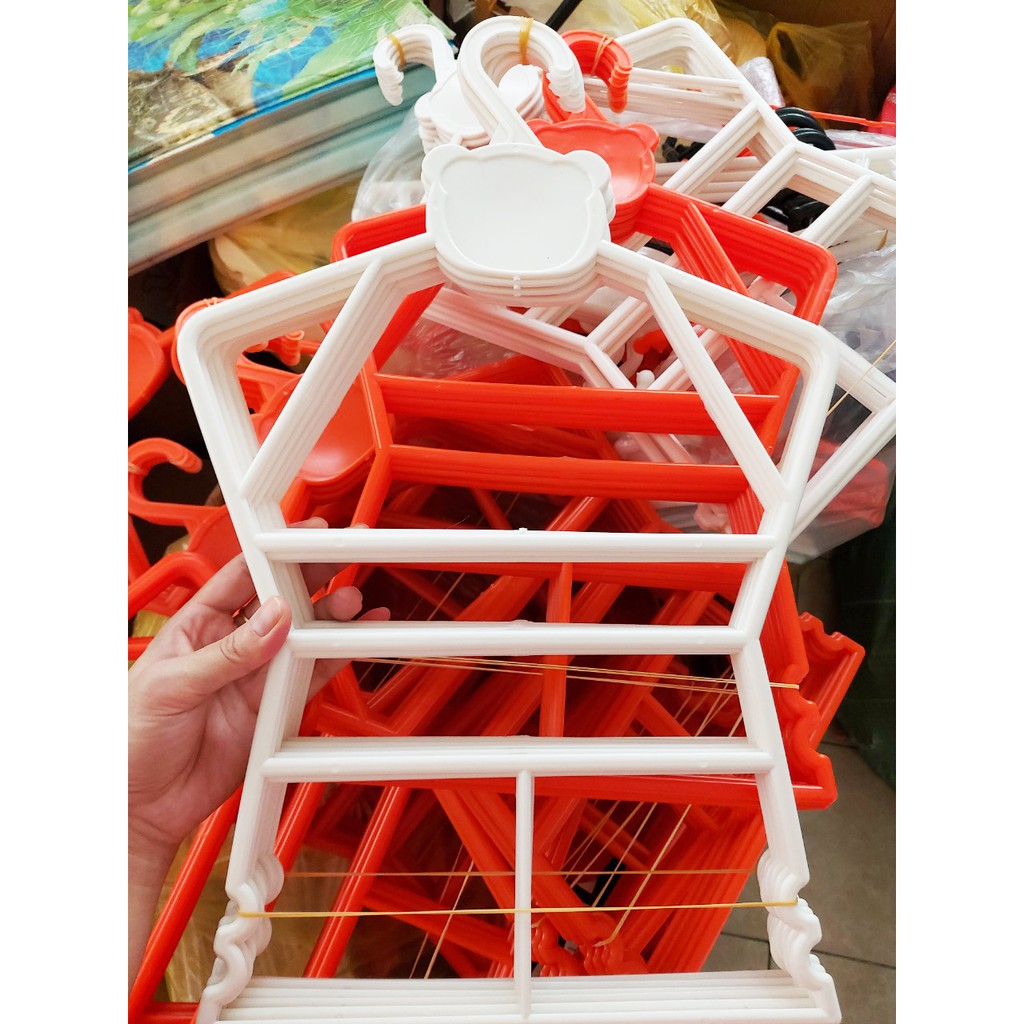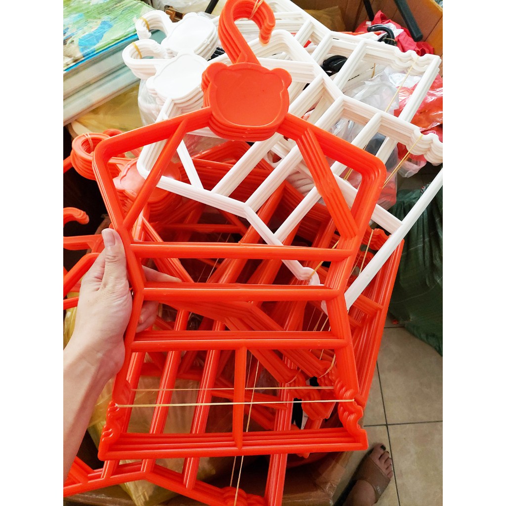 - Mô tả: Sản phẩm bằng nhựa dẻo, phù hợp để treo cả bộ quần và áo của trẻ em từ 4 đến 6 tuổi.Sản phẩm sử dụng chuyên dụng trong các shop quần áo trẻ em và cũng rất thuận tiện trong các gia đình.