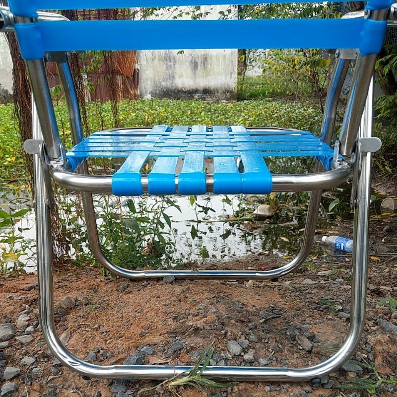 (Rẻ nhất) Ghế Xếp Inox - Dây Nhựa Đài Loan- dày nặng 4,5kg