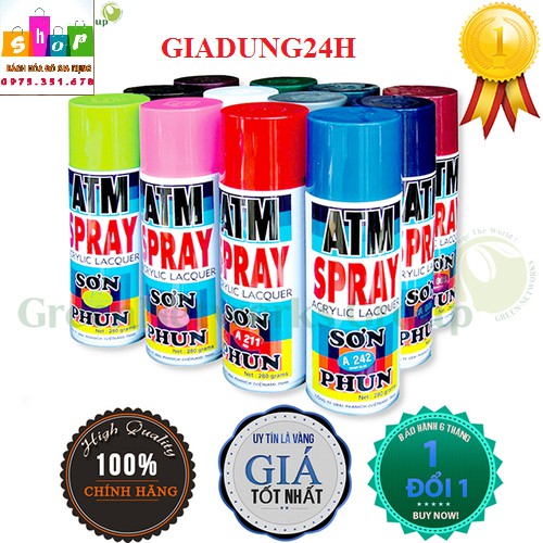 Nhà Cửa & Đời Sống > Dụng cụ & Thiết bị tiện ích > Sơn nhà cửa || (RẺ NHẤT SÀN) Sơn phun xịt ATM Spray 400ml cầm tay tiện lơi-Đủ mã màu-Giadung24hCòn hàng