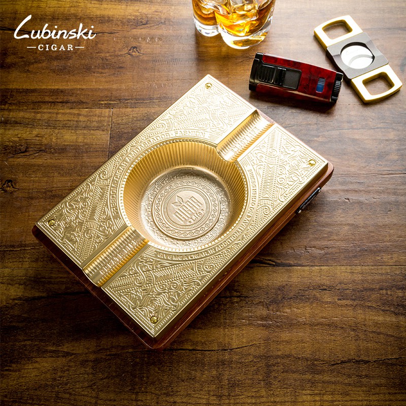 [RẺ NHẤT SHOPEE] Gạt Tàn Lunbinski YJA-20004, Chất Liệu Gỗ, Kim Loại Khắc Họa Tiết