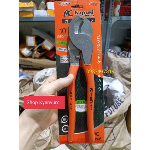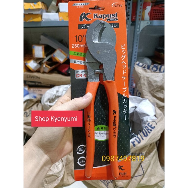 KÌM CẮT CÁP KAPUSI 10 INCH 250mmKìm cắt cáp điện KAPUSI được thiết kế để cộng lực hay nói cách khác là tạo ra lực cắt lớn mà không phải dùng lực tác động bằng tay quá lớn, giúp bạn dễ dàng thao tác và không tốn nhiều lực.