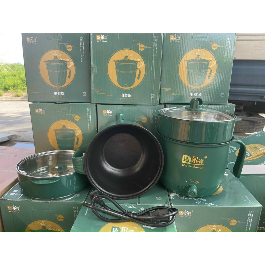 Giới thiệu [RẺ NHẤT SHOPEE]Nồi Lẩu Mini 2 Nấc Nhiệt Kèm Giá Hấp Có Tay Cầm Mẫu Mới 2021 - Ca Nấu Mì,Chiên,Sào Đa Năng Xanh Lục Bảo