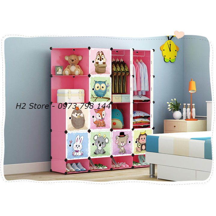 [RẺ NHẤT SHOPEE] TỦ NHỰA LẮP GHÉP 16Ô + Ô GIÀY HÌNH CÚ NGỘ NGHĨNH ĐỂ ĐỒ ĐA NĂNG THÔNG MINH CHO TRẺ EM sâu 47cm