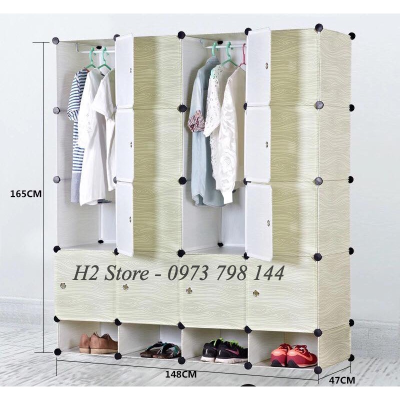Tủ nhựa lắp ghép 16 ô + 4 ô giày🎯 Kích thước sau khi lắp: cao 1m65, ngang 1m50m, sâu 47cm