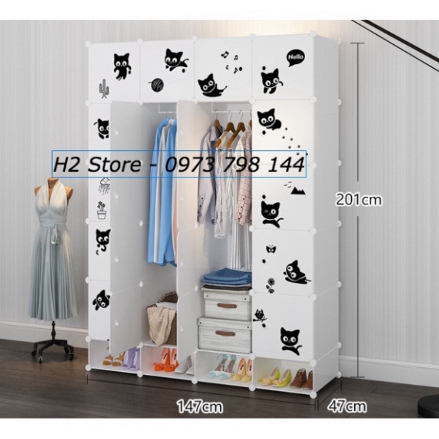 Giới thiệu [RẺ NHẤT SHOPEE] TỦ NHỰA LẮP GHÉP 20 Ô + 4 GIÀY CỬA TRẮNG MÈO ĐEN sâu 47cm