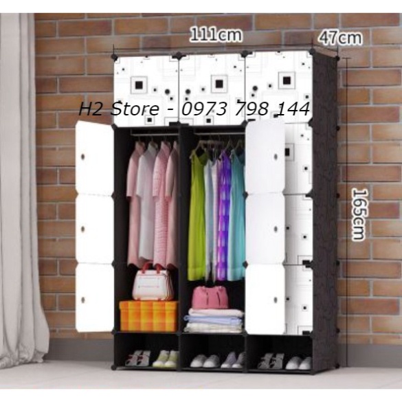 TỦ NHỰA LẮP GHÉP 12 Ô + 3 GIÀY VÁCH ĐEN ĐỂ ĐỒ ĐA NĂNG THÔNG MINH sâu 47cm ( tùy chọn mẫu )🎯 Kích thước sau khi lắp: cao 1m65, ngang 1m10, sâu 47cm
