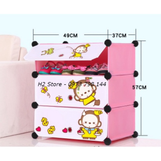 [RẺ NHẤT SHOPEE] TỦ NHỰA LẮP GHÉP ĐỂ GIÀY 3 Ô VÁCH HỒNG CỬA KHỈ DỄ THƯƠNG