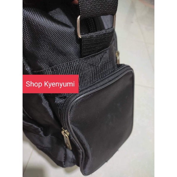1 ngăn chính + 2 ngăn trước túi + 2 ngăn sau túi và 2 hộp nhỏ 2 bên hông