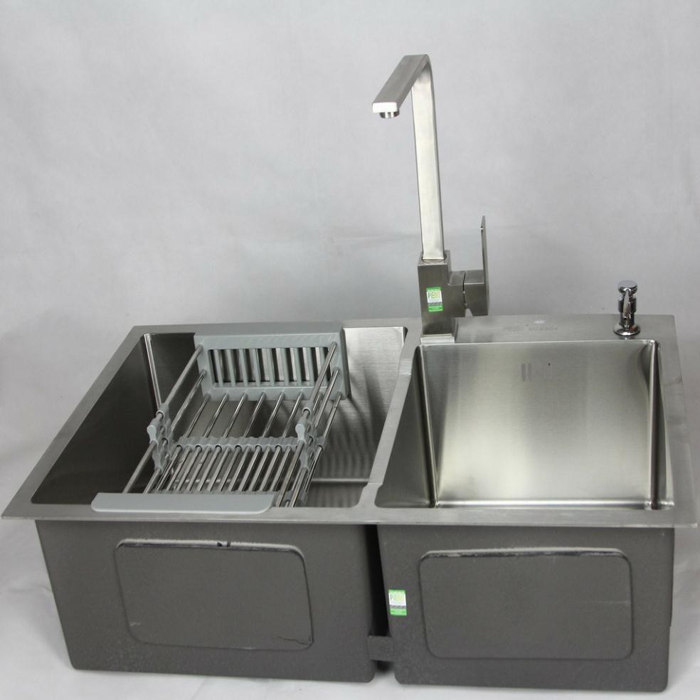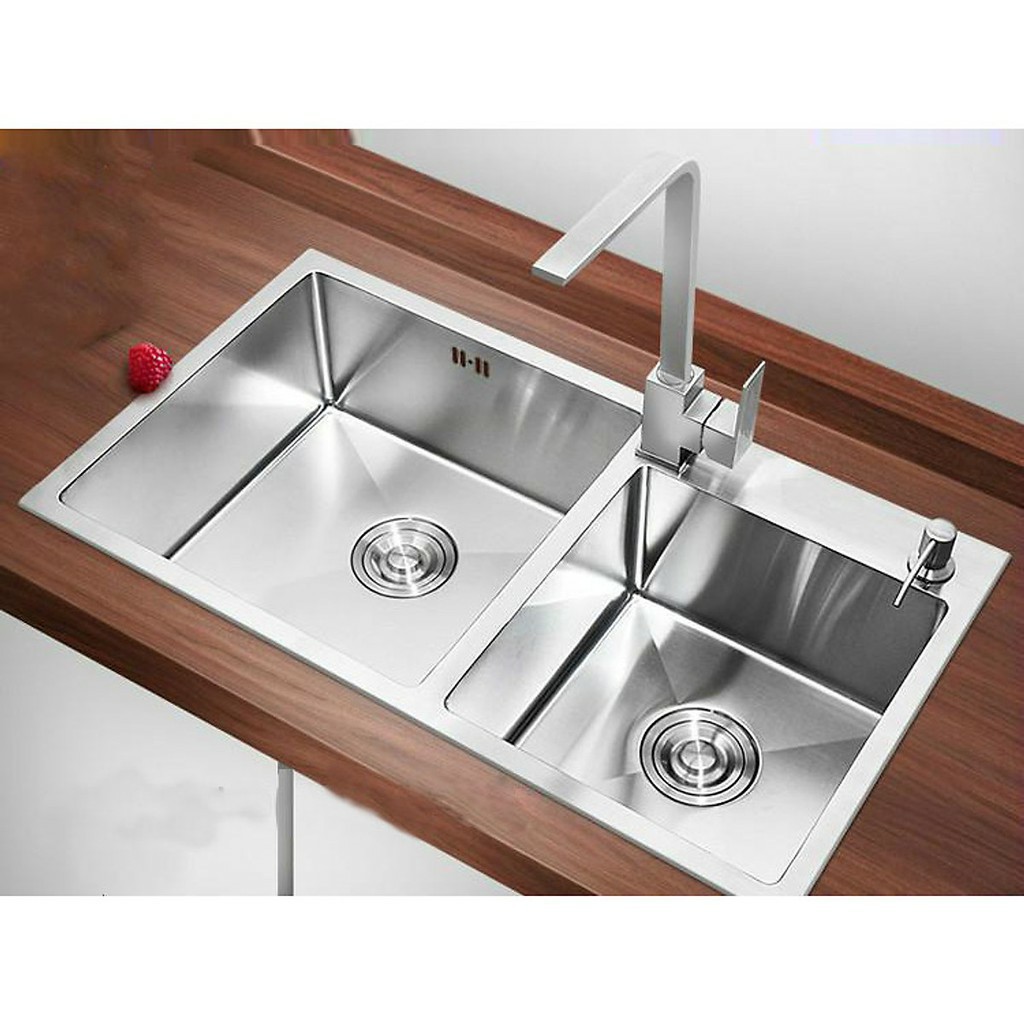 Nhà cửa & Đời sống > Dụng cụ & Thiết bị tiện ích > Chậu rửa & vòi nước || [Rẻ nhất shoppee] Combo Chậu rửa bát đúc Inox 304 cao cấp hai hố 7843, 8245+ Vòi vuông INOX SUS304 nóng lạnhCòn hàng