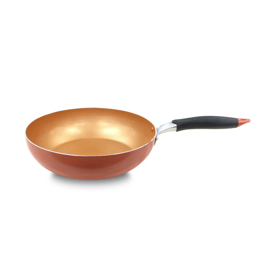 Chất liệu cao cấp: Chảo được đúc từ nhôm nguyên khối siêu bền, dày 2.4mm, có khả năng chống va đập cực tốt. Chất liệu nhôm còn có khả năng dẫn nhiệt tốt, tỏa nhiệt đều giúp món chiên xào được ngon hơn.