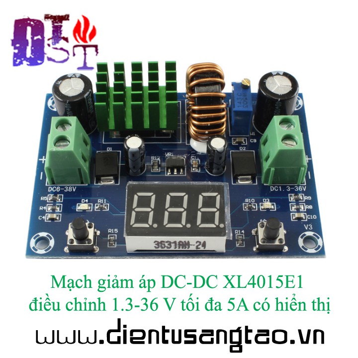 Giới thiệu ✅ [RẺ NHẤT VIỆT NAM] ⚡ Mạch giảm áp DC-DC XL4015E1 điều chỉnh 1.3-36 V tối đa 5A có hiển thị