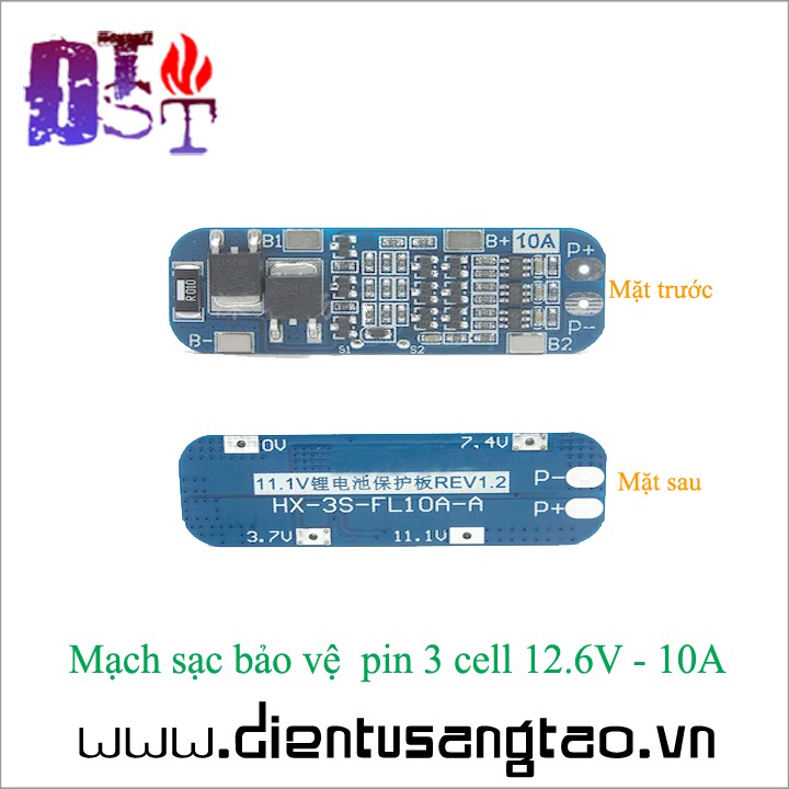 Mạch sạc bảo vệ pin 3 cell 12.6V - 10A có chức năng sạc và bảo vệ 3 cell pin 18650. Mạch còn có chức năng tự ngắt khi sạc đầy, bảo vệ ngắn mạch, quá áp.